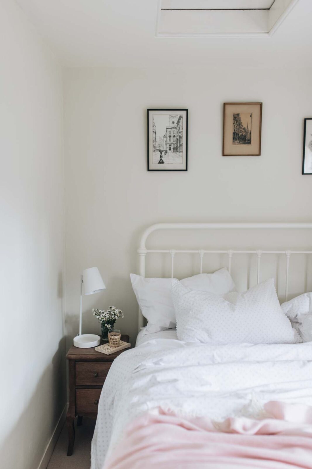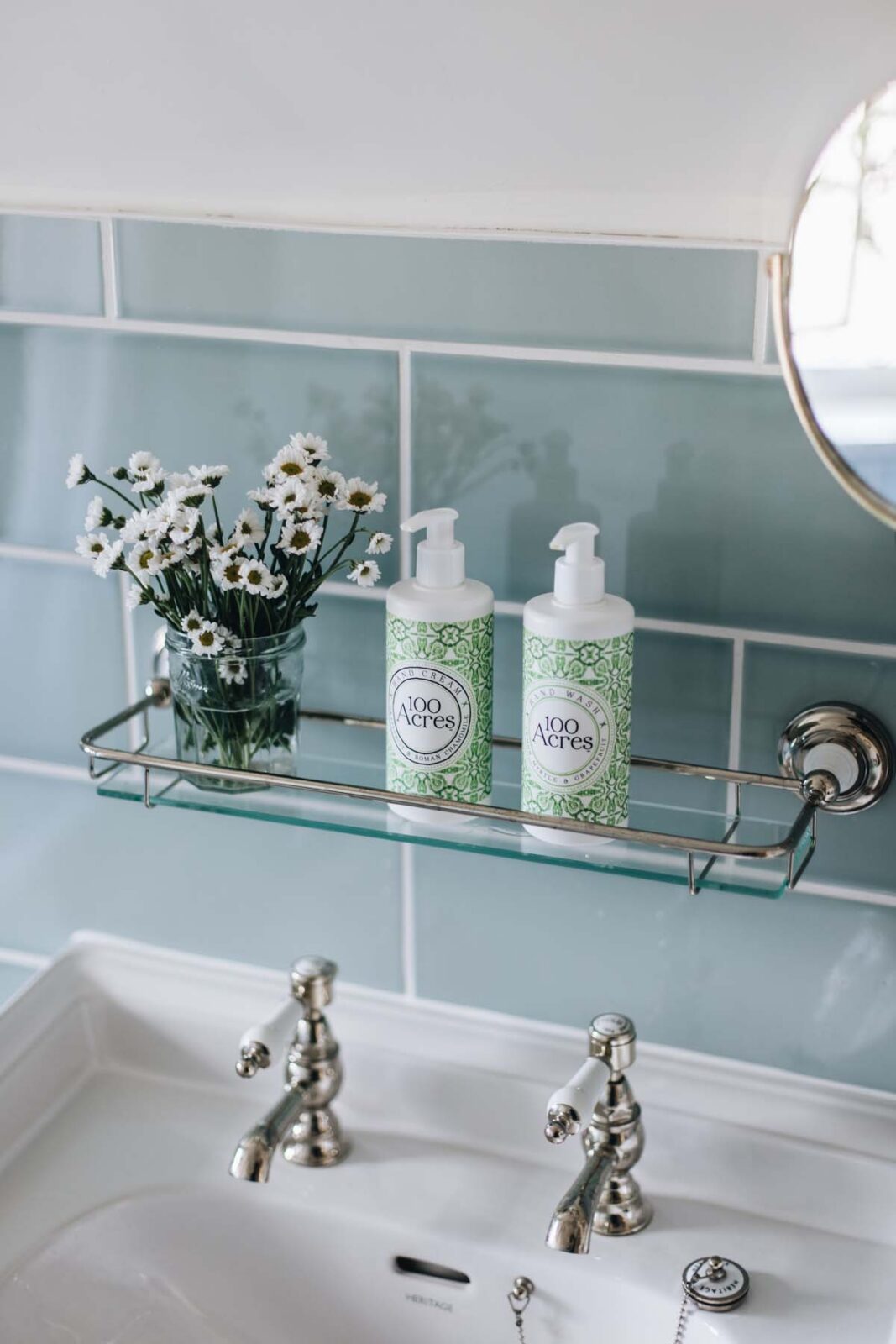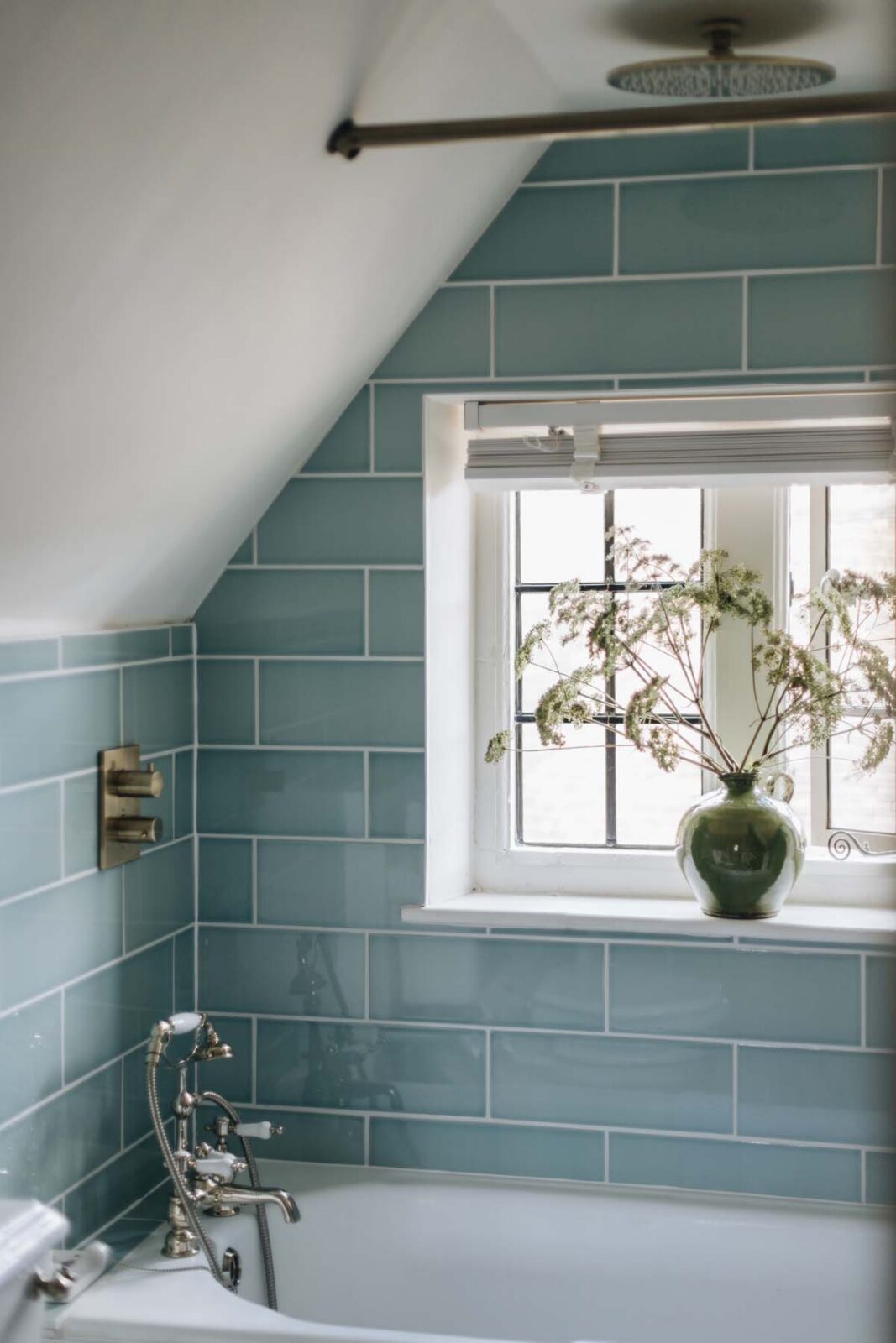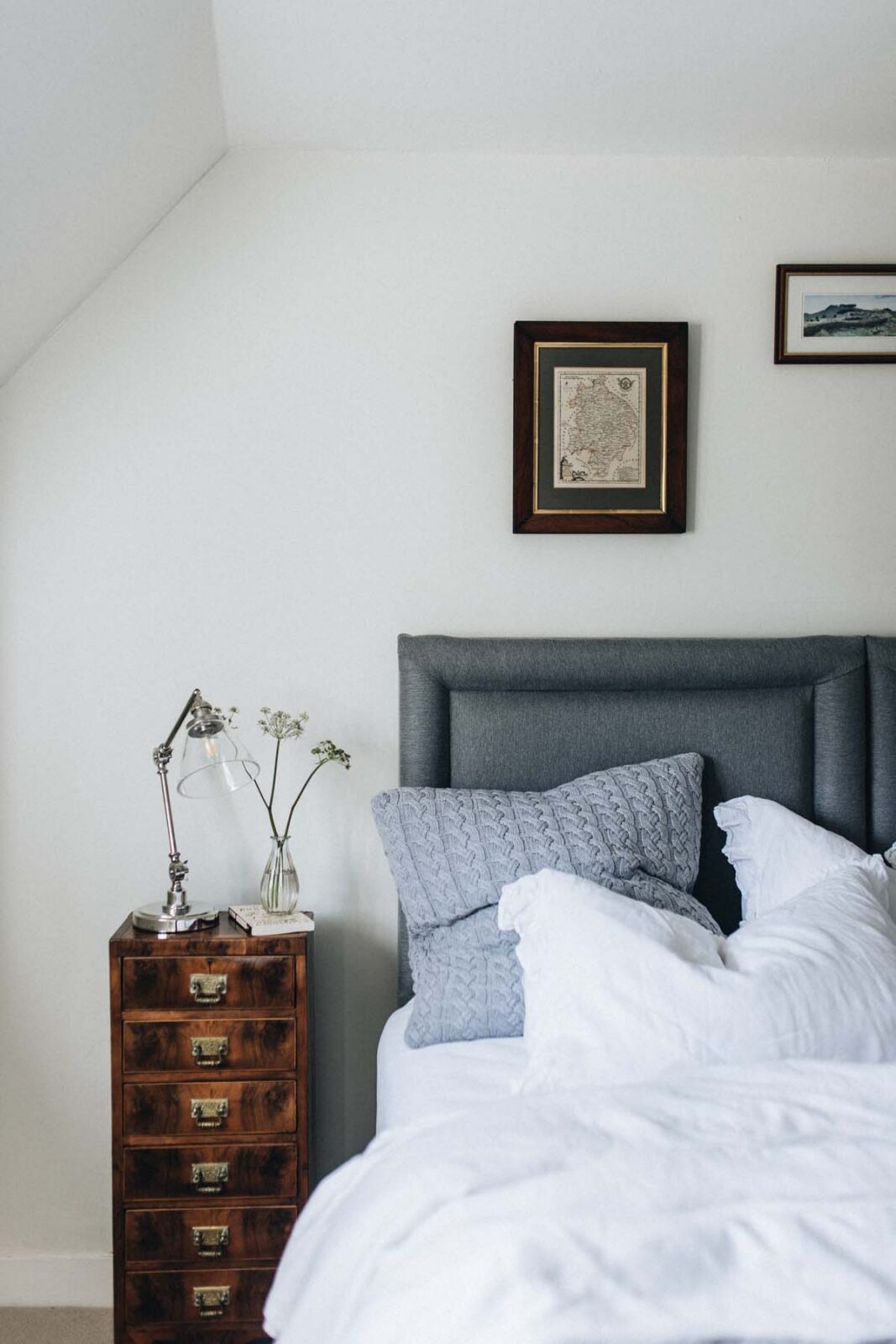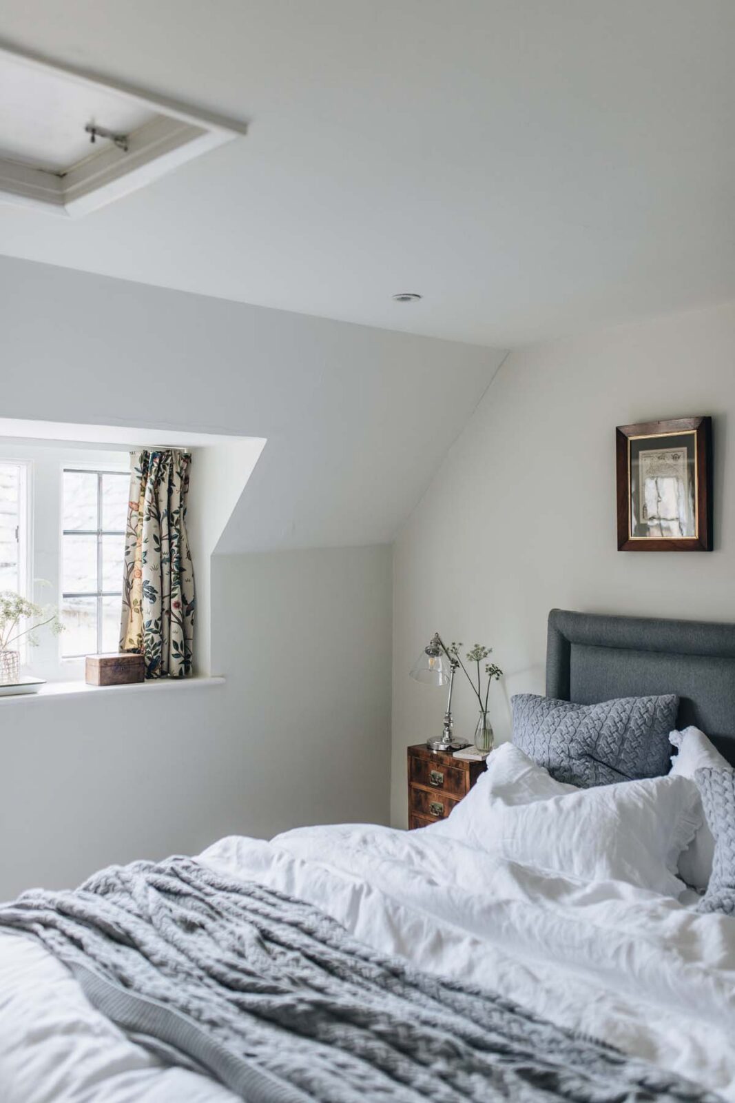 The two double bedrooms are light and cosy. Locally commissioned artwork adorns the walls and original fireplace features are mixed with stylish contemporary furnishings. Sitting off the quirky geometric landing space, you’ll find a sky-blue family bathroom, complete with a bath, overhead rainfall shower and 100 Acres products.