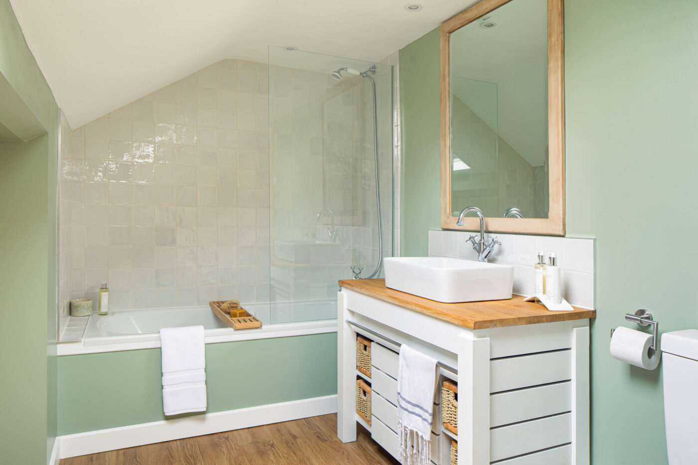 April Cottage has two double bedrooms, both of which have been lovingly decorated. Once again, original wooden beams enhance the house’s history, while warm tones and soft furnishings amp up the comfort. There is a bath with an overhead shower, as well as a separate shower room, both carefully designed and finished with modern touches. A separate study is set up should you need a quiet space for remote work or life admin.