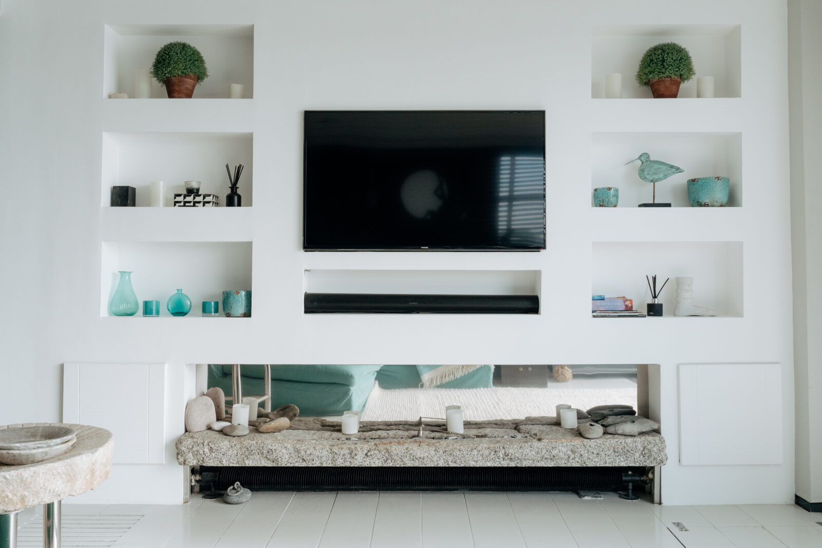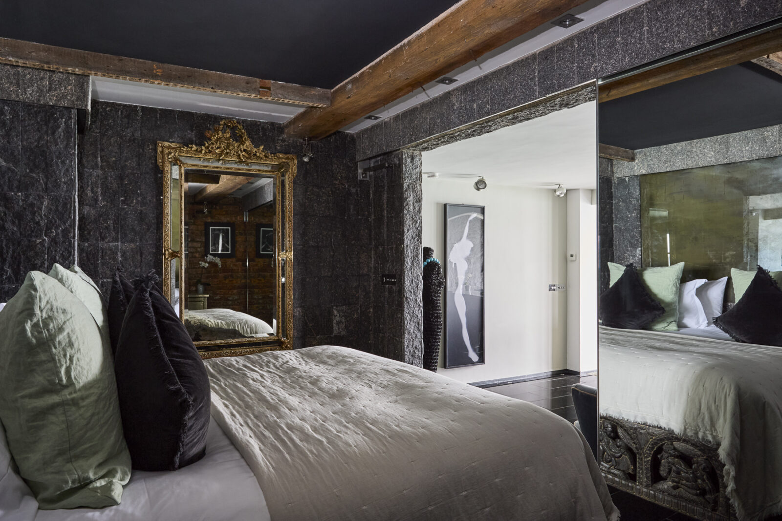 The bedroom, meanwhile, is separated from the living room by a sliding mirrored wall, allowing for some truly incredible St Ives sea views from the moment you wake up. To the rear of the bedroom is the en-suite bathroom with a full-size bath and walk-in shower.