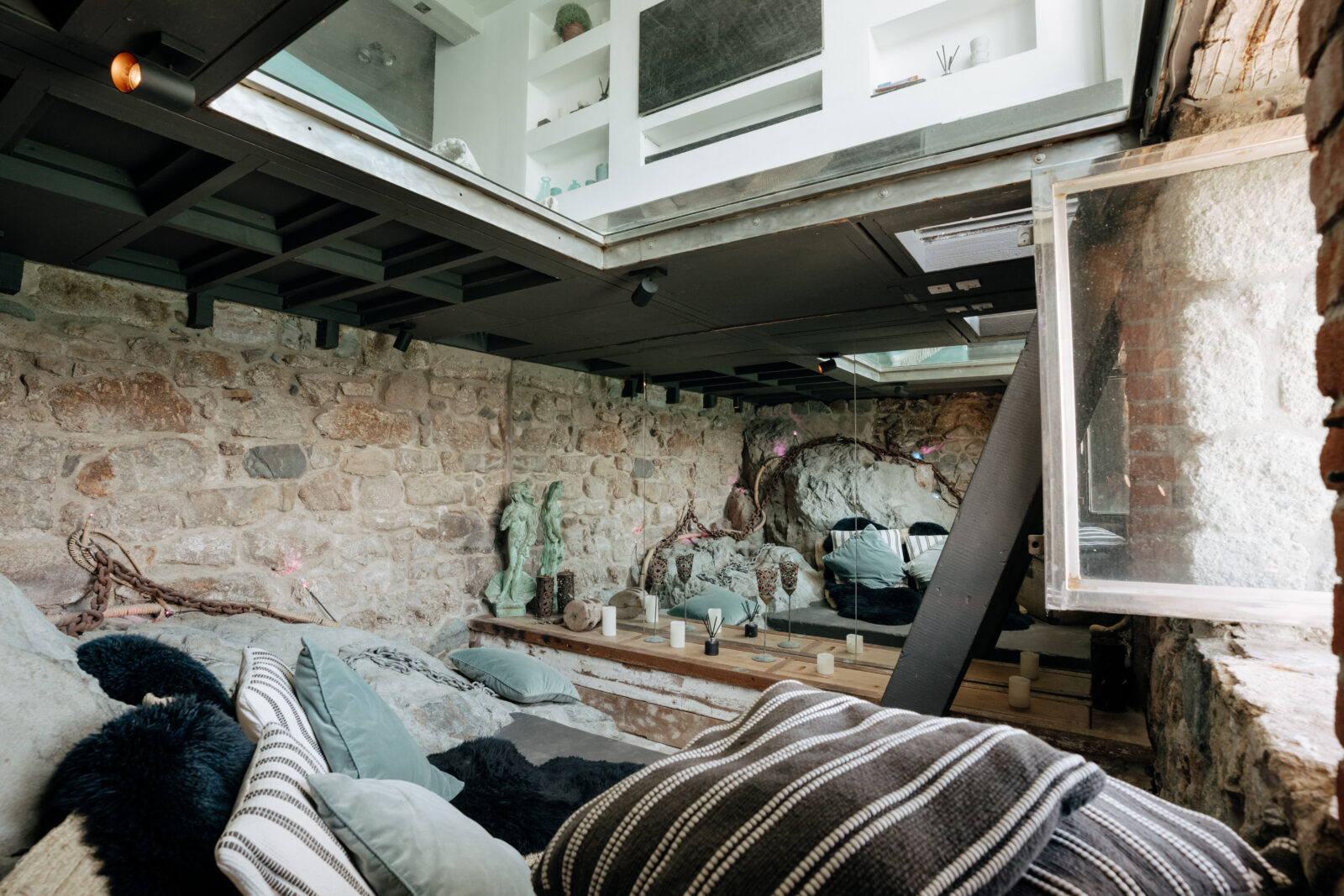 And better yet, an Enid Blyton-style trap door leads you to a private cave beneath the living room where you can lie on fur rugs whilst sipping a glass of champagne as you admire the sea views.