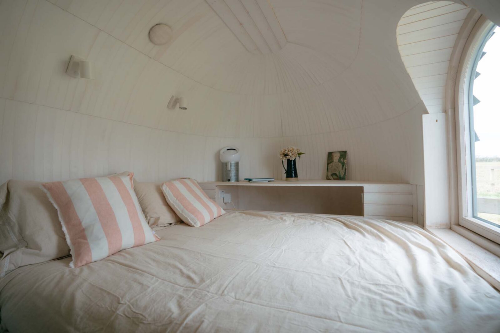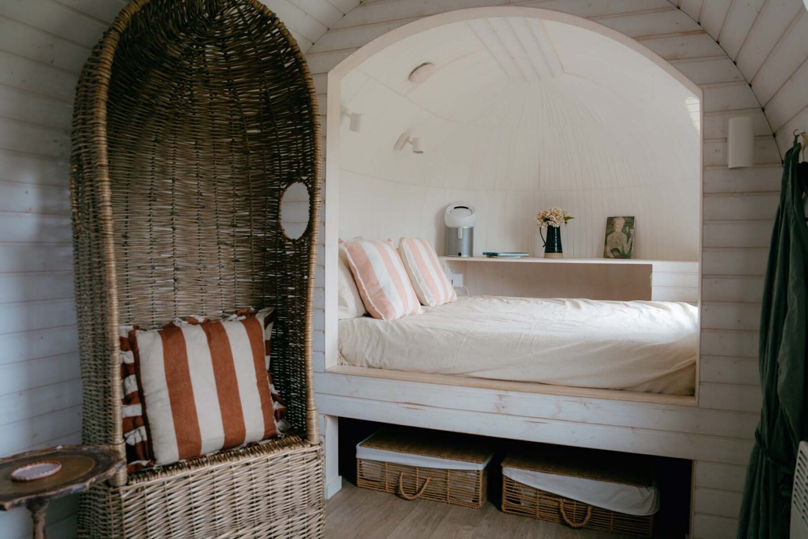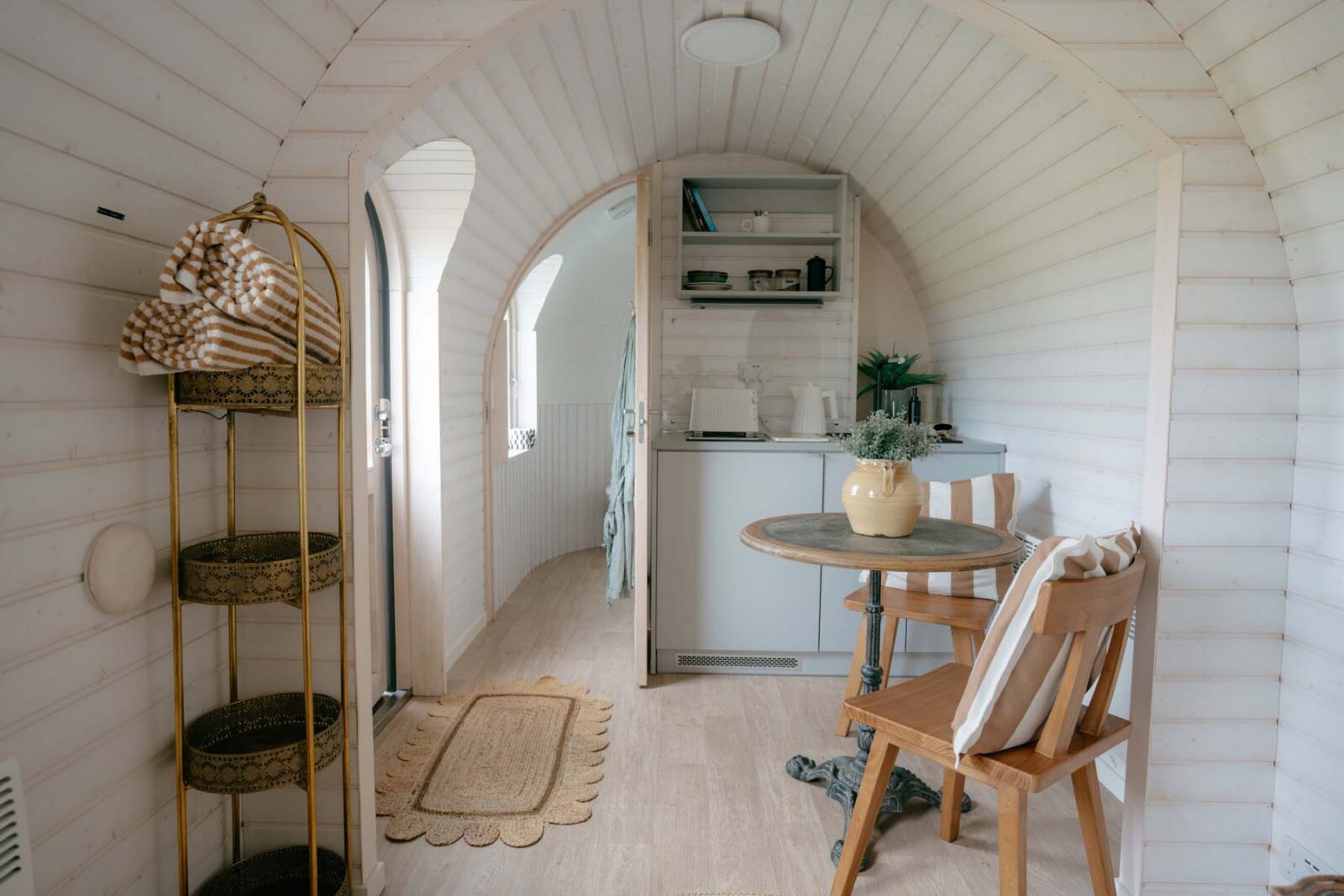 In the separate whitewashed cabin, you’ll also find a compact kitchenette.