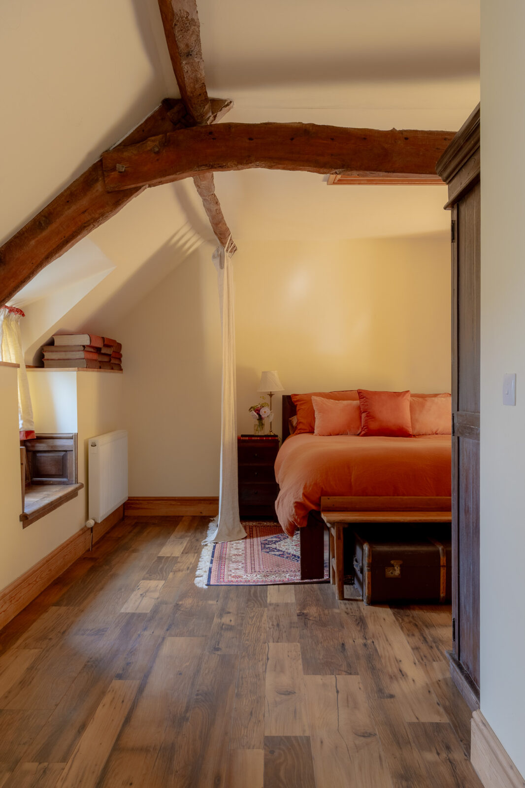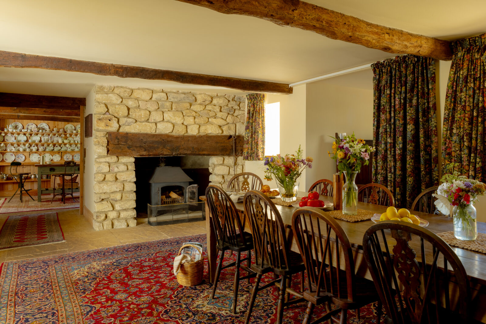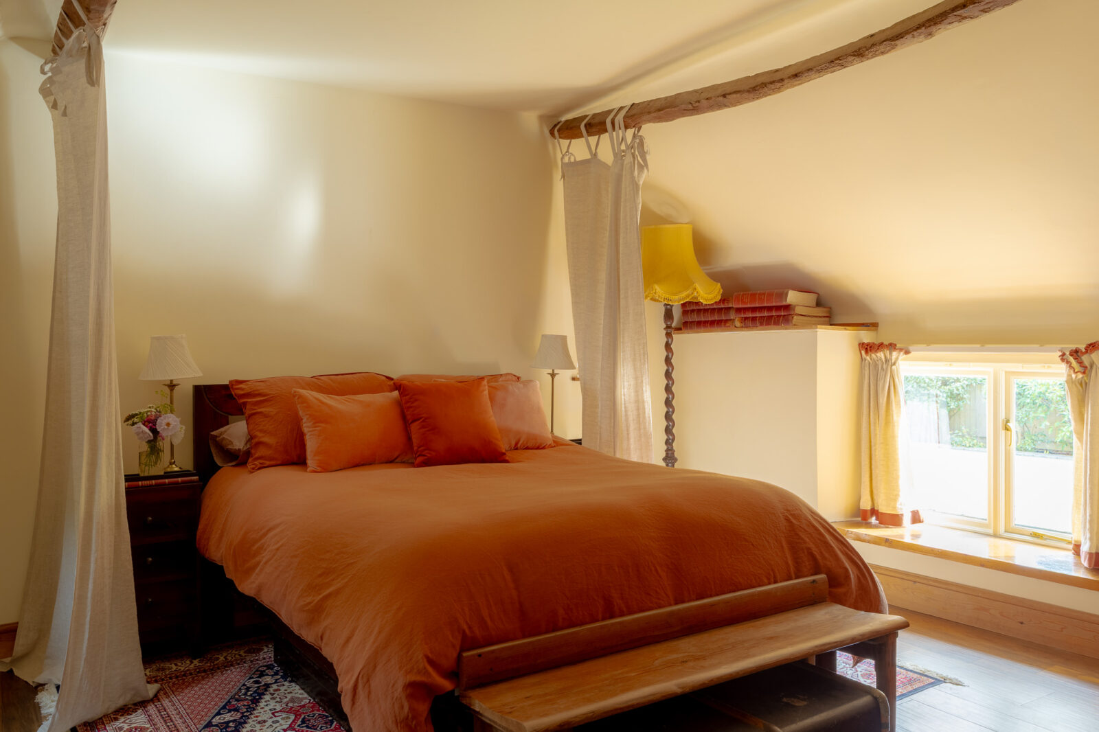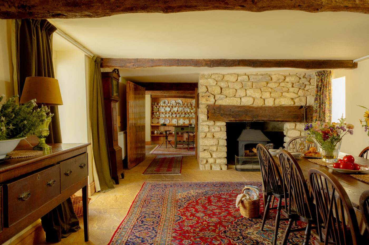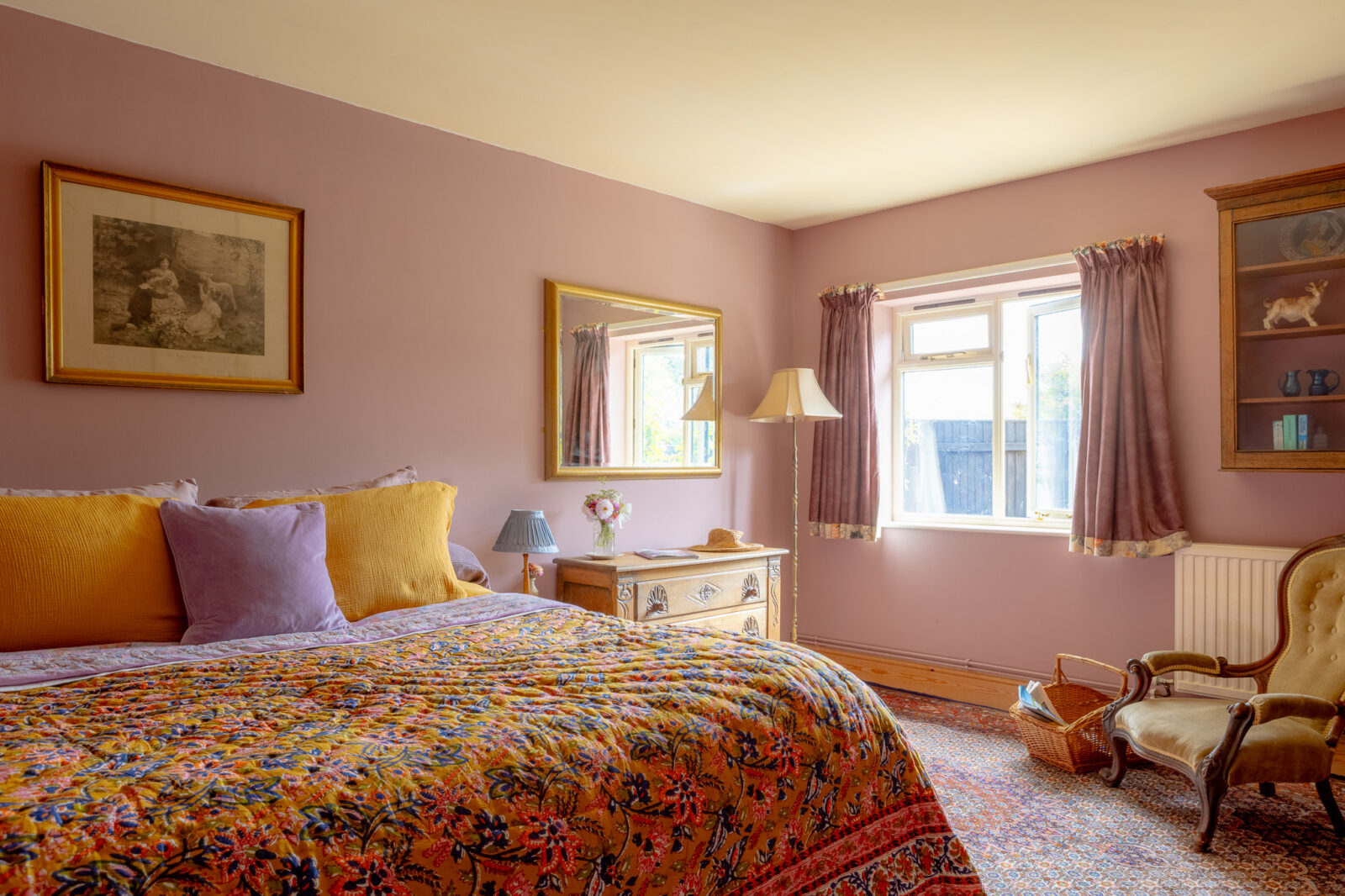 Gilda’s House sits at the southern edge of an historic Somerset estate, overlooking the spring-fed swimming pond. Rich in colour and detail, this spacious home features delightfully wonky beams, two inviting living rooms, and a dining space warmed by wood burners – ideal for larger gatherings or multi-family escapes.