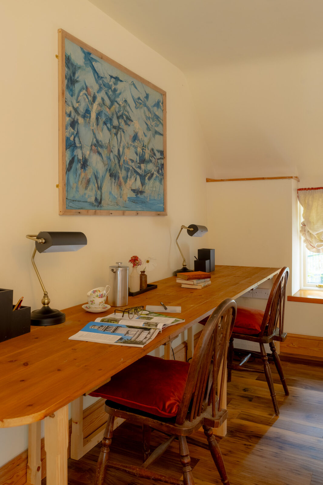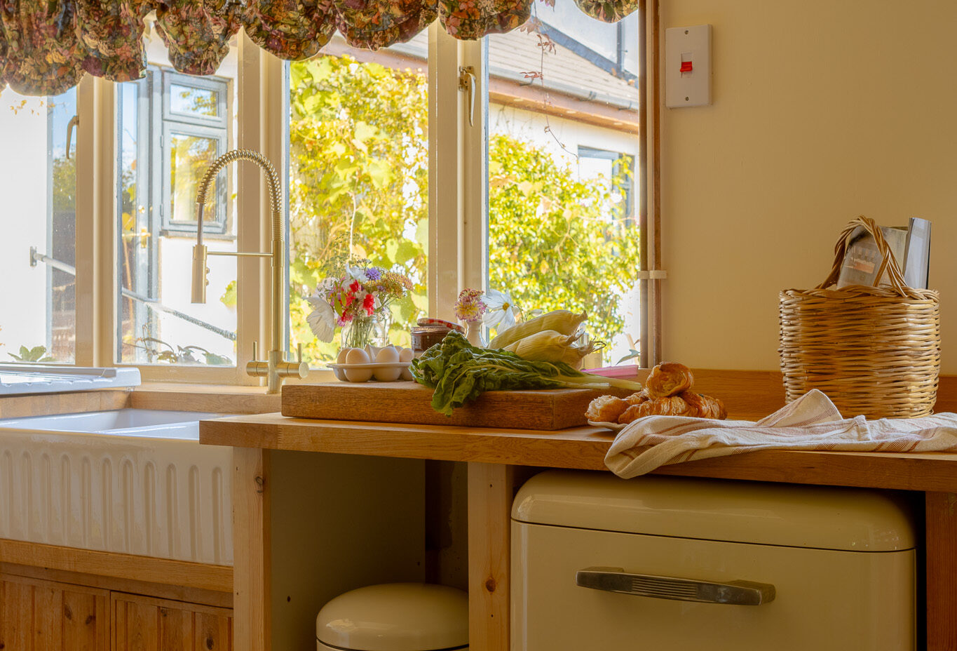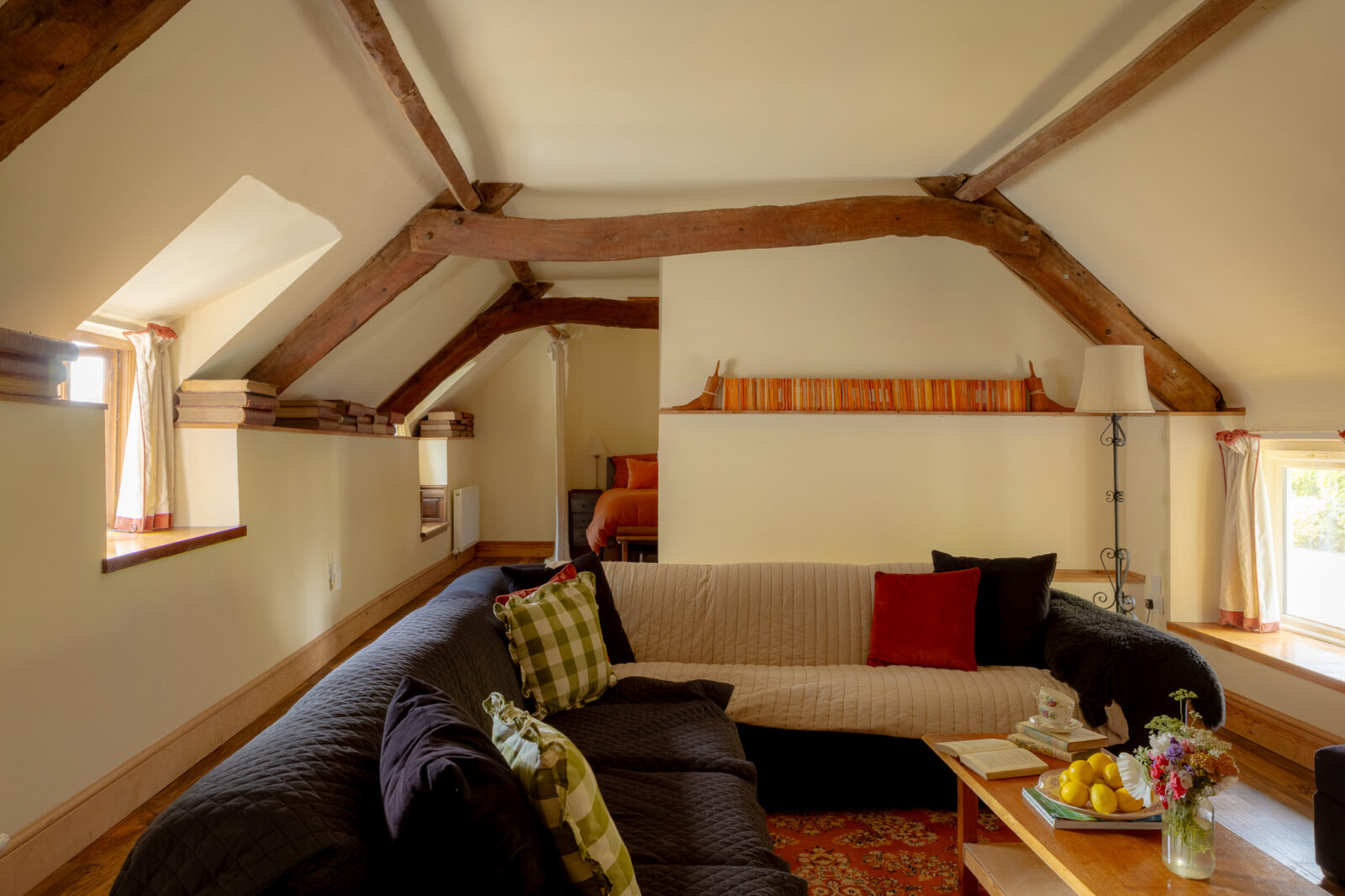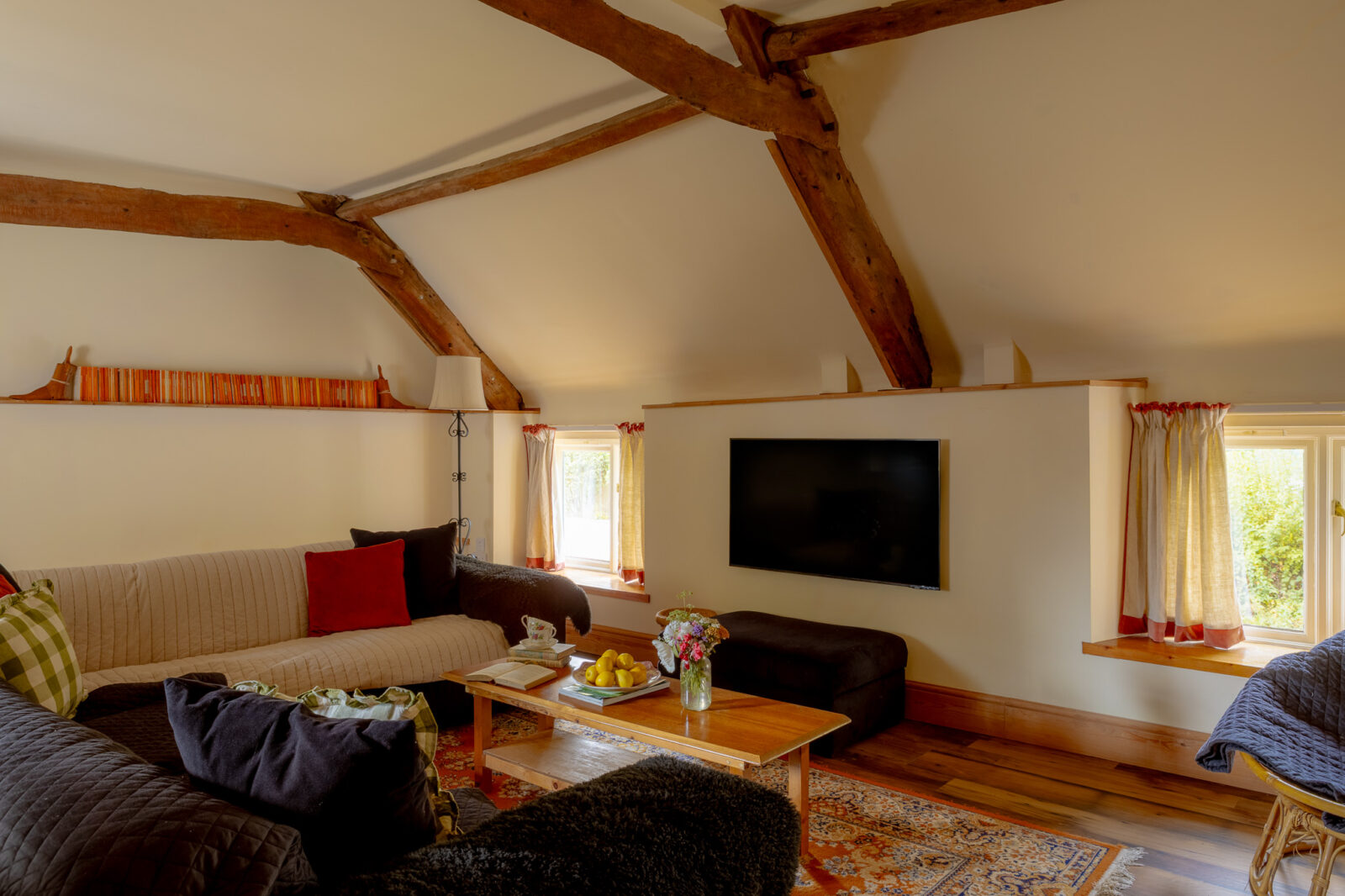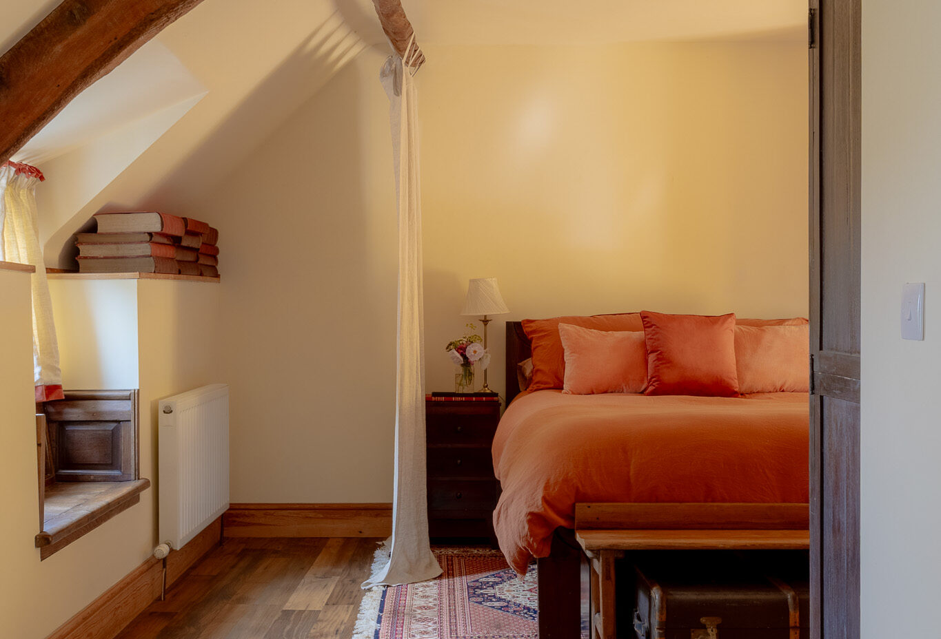 Gilda’s House sits at the southern edge of an historic Somerset estate, overlooking the spring-fed swimming pond. Rich in colour and detail, this spacious home features delightfully wonky beams, two inviting living rooms, and a dining space warmed by wood burners – ideal for larger gatherings or multi-family escapes.