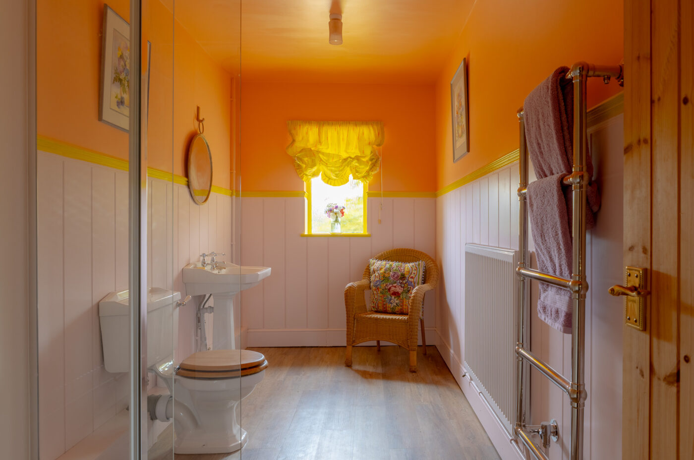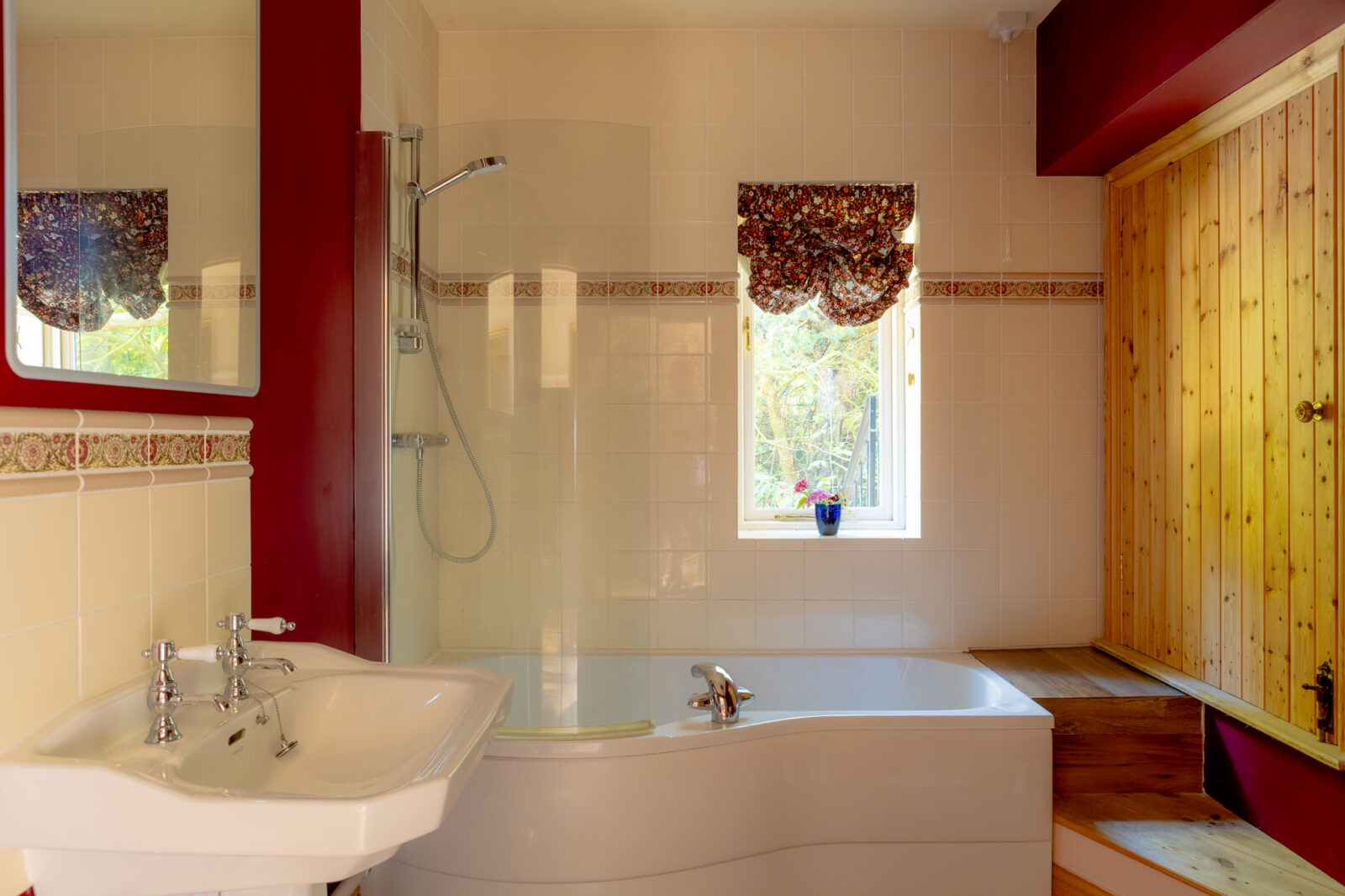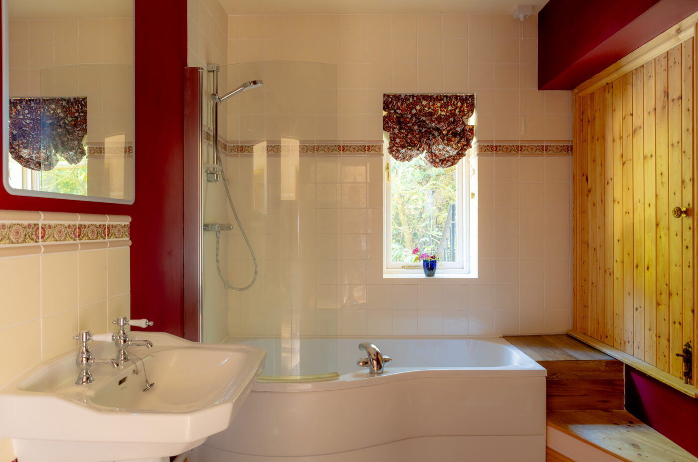 All of the bedrooms have their own distinct character, with playful touches like grand four-poster beds, intricate tapestries, and dramatic drapes. Two Super-King and two King-size bedrooms split across the ground and first floor sleep eight guests comfortably, while a secret alcove with a mattress upstairs is sure to be a hit with additional younger guests. There are two shower rooms on the ground floor and a bathroom with a shower head on the first floor.