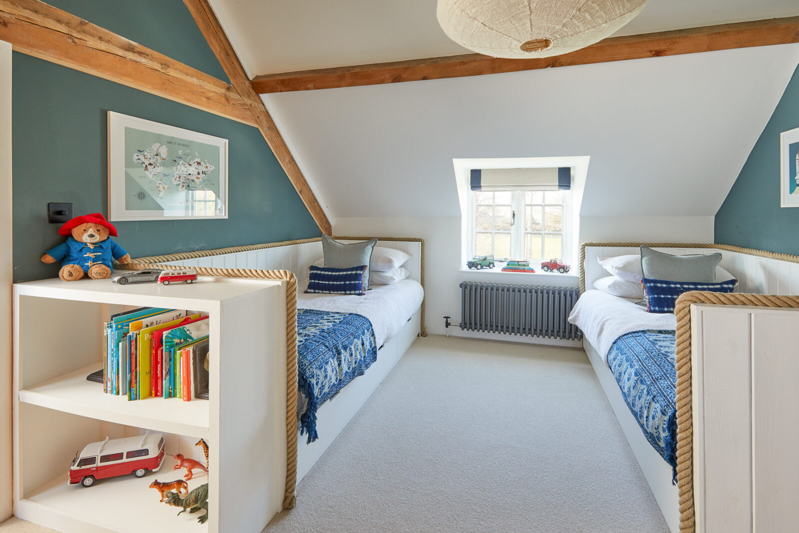 On the first floor you’ll find two unique super-king size bedrooms with beautiful en-suite bathrooms (one with a shower and one with a bath and shower), and a children’s nursery-style bedroom with a cot that can be set up as a toddler bed if required. On the second floor there’s another children’s bedroom with adult-size twin beds, a magical nursery with a teepee, and a family bathroom with both a bath and a shower.