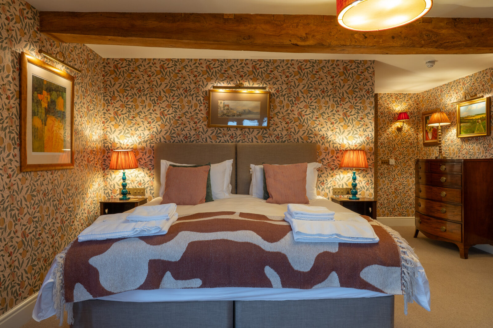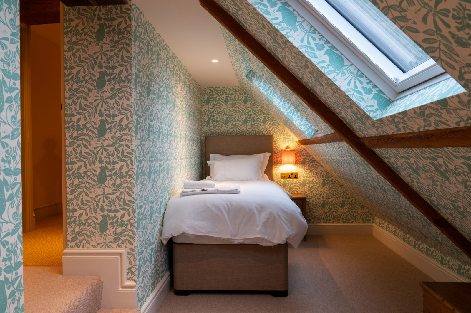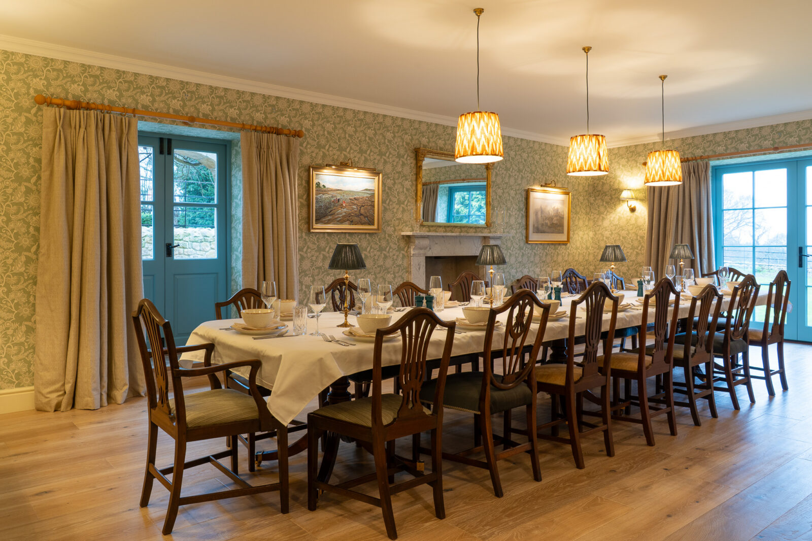 The Stone House has nine bedrooms with space for 18 guests, and each one has its own beautifully appointed en-suite. The majority of the bedrooms can be converted from super Kings to twins – giving you handy flexibility on group trips. Each one has been thoughtfully designed to have its own distinct character, with lively wallpaper and sumptuous furnishings supplied in abundance.