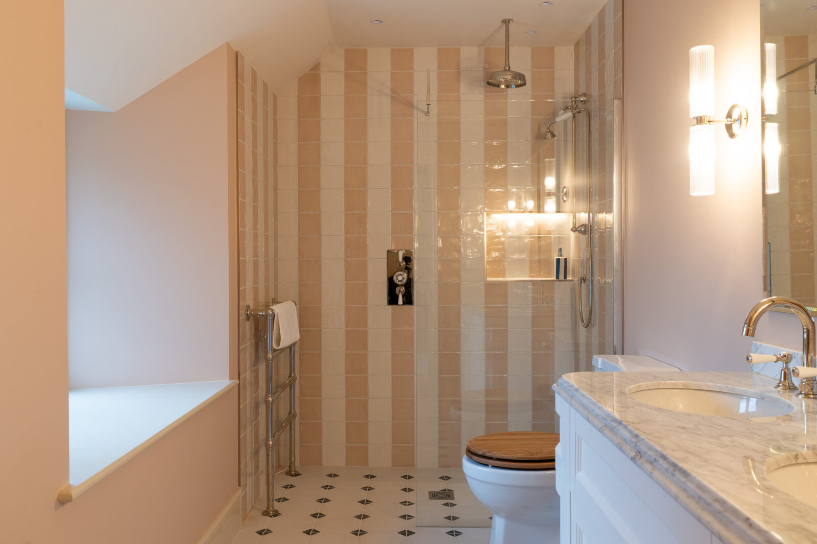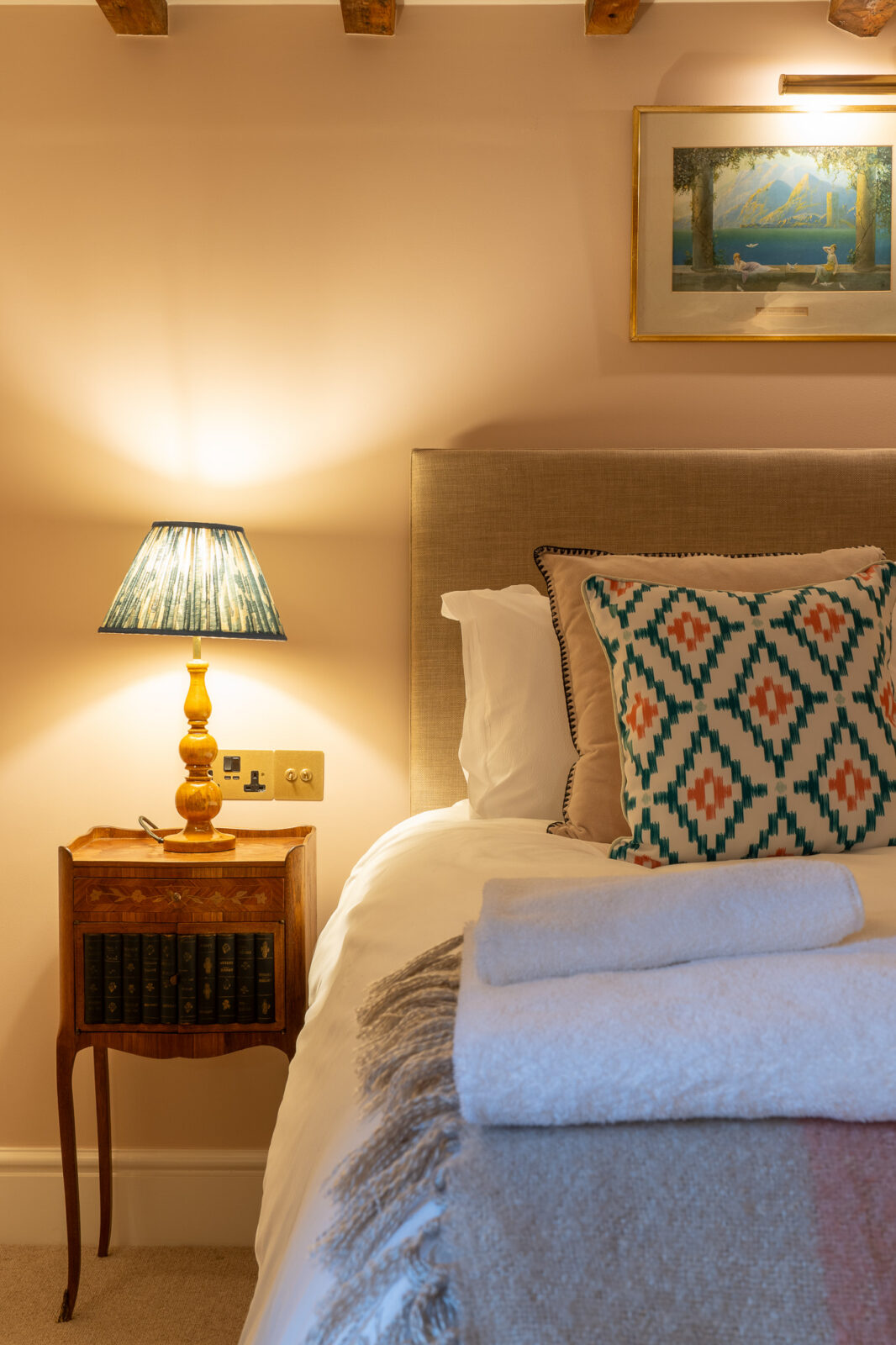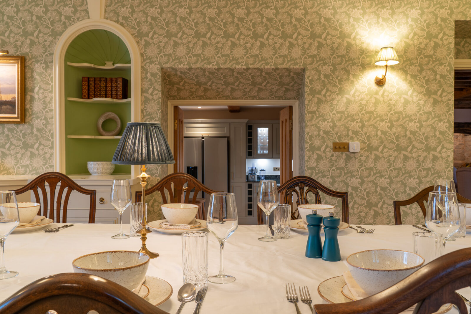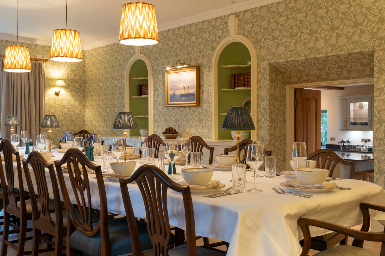 The Stone House has nine bedrooms with space for 18 guests, and each one has its own beautifully appointed en-suite. The majority of the bedrooms can be converted from super Kings to twins – giving you handy flexibility on group trips. Each one has been thoughtfully designed to have its own distinct character, with lively wallpaper and sumptuous furnishings supplied in abundance.