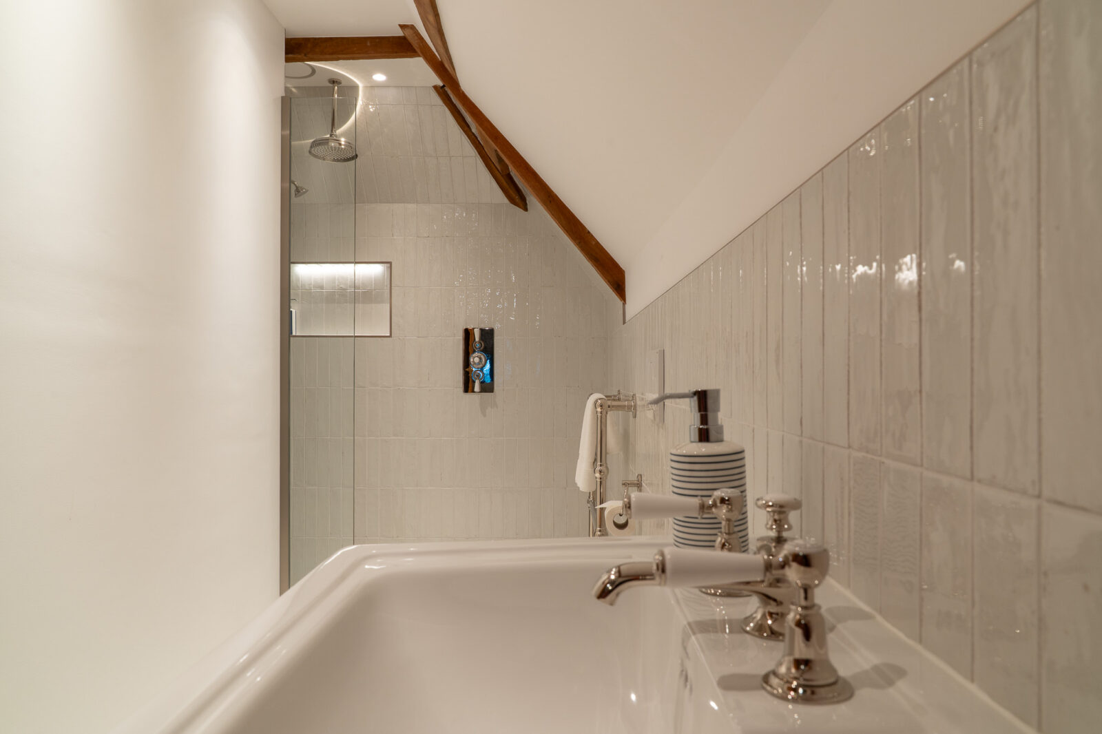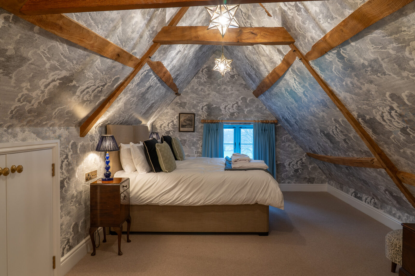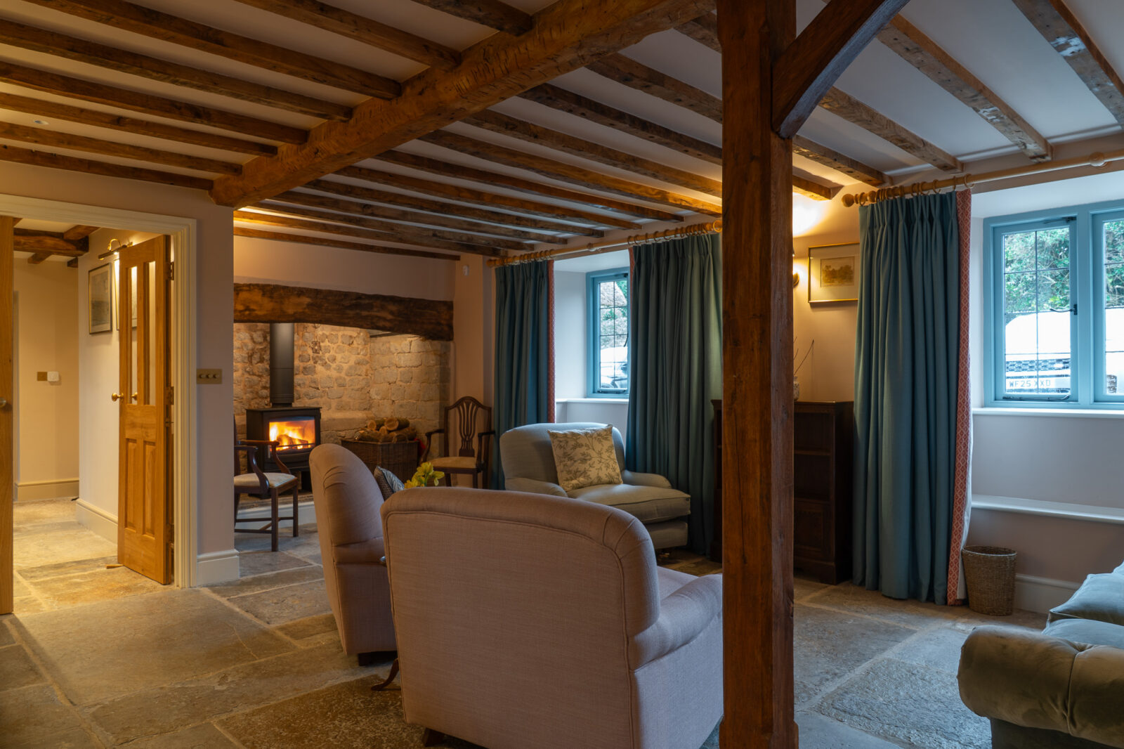 As soon as you walk through the door, you’re met with a thoughtful blending of modern and traditional. The Stone House retains lots of its original features, with grand stone fireplaces, exposed wooden beams, and blue lias stone floors.