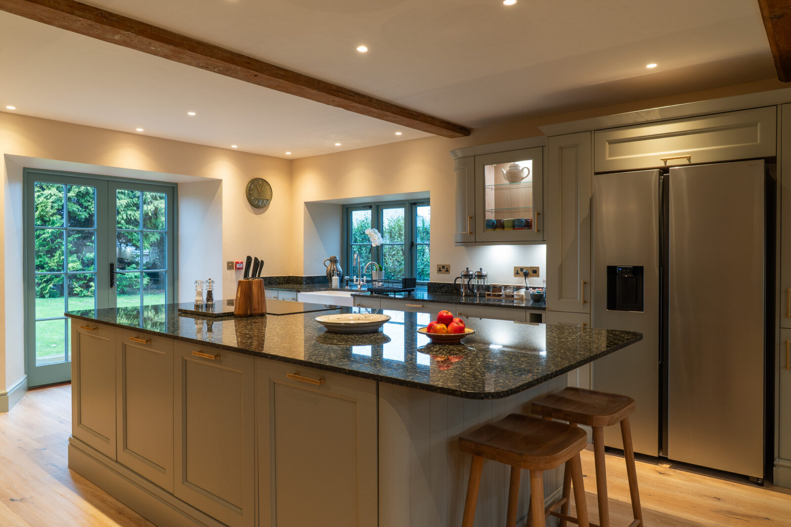 The kitchen sits at the heart of the home, and is a spacious place for group gatherings. There’s a large island, double ovens, and a huge American-style fridge-freezer. Once you’ve cooked up a feast, reconvene in the impressive dining room, with space for 18 around the large mahogany table. Come summer, there’s al-fresco dining space in the beautiful gardens.