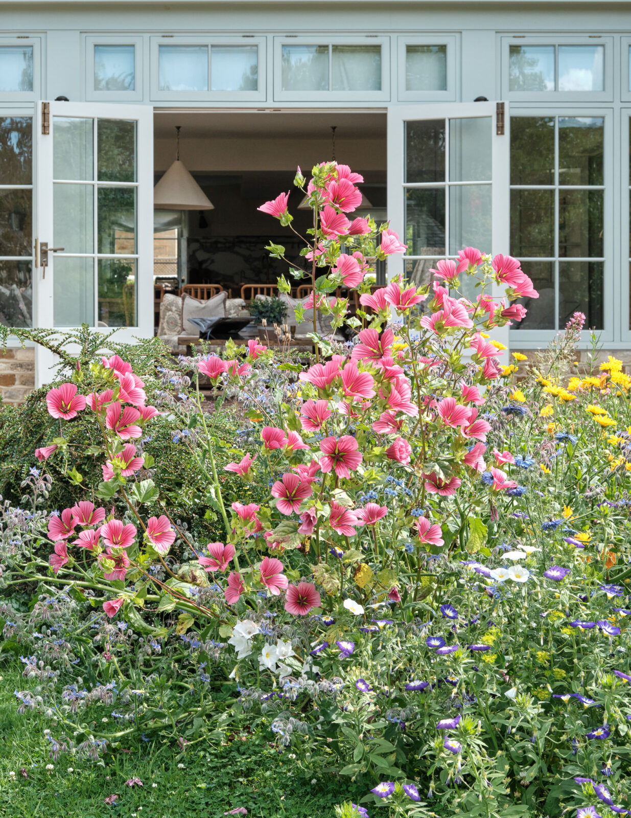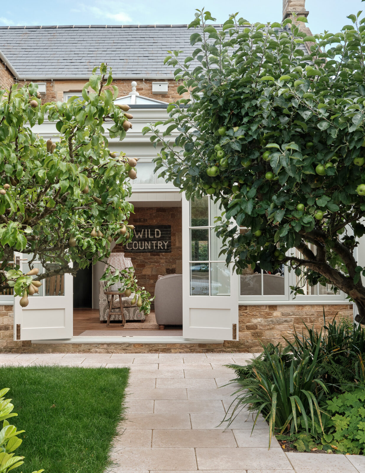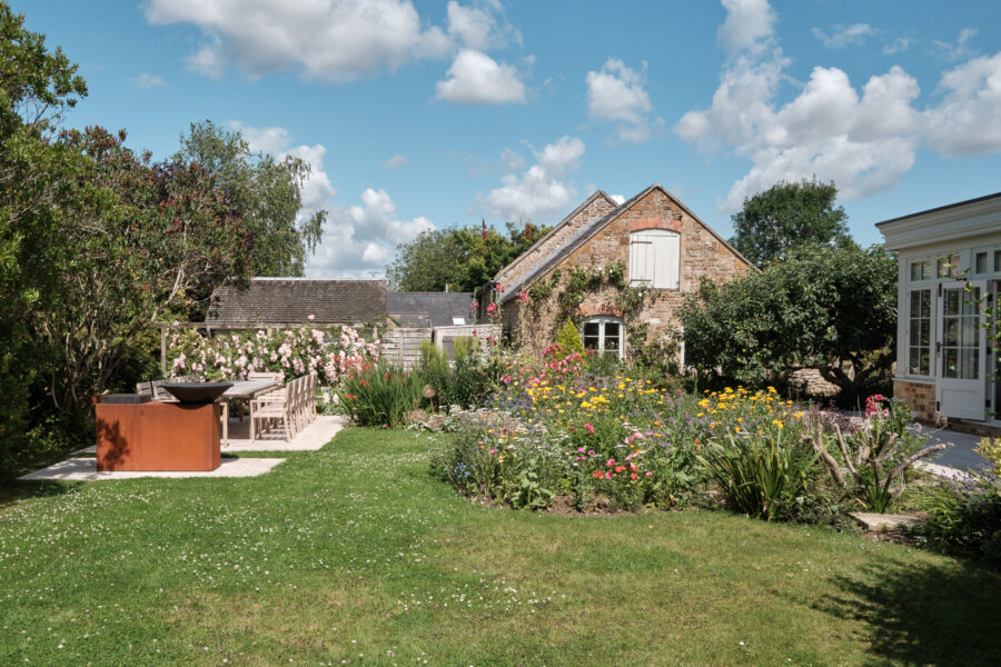 The lawn at the front of the house is split down the middle with a fragrant lavender-lined path leading you to the front door. The garden then wraps around the property with double door access from the orangery. If you’re visiting in summer, you can expect a swanky Ofyr BBQ that doubles up as a fire pit, honing the art of outdoor cooking.